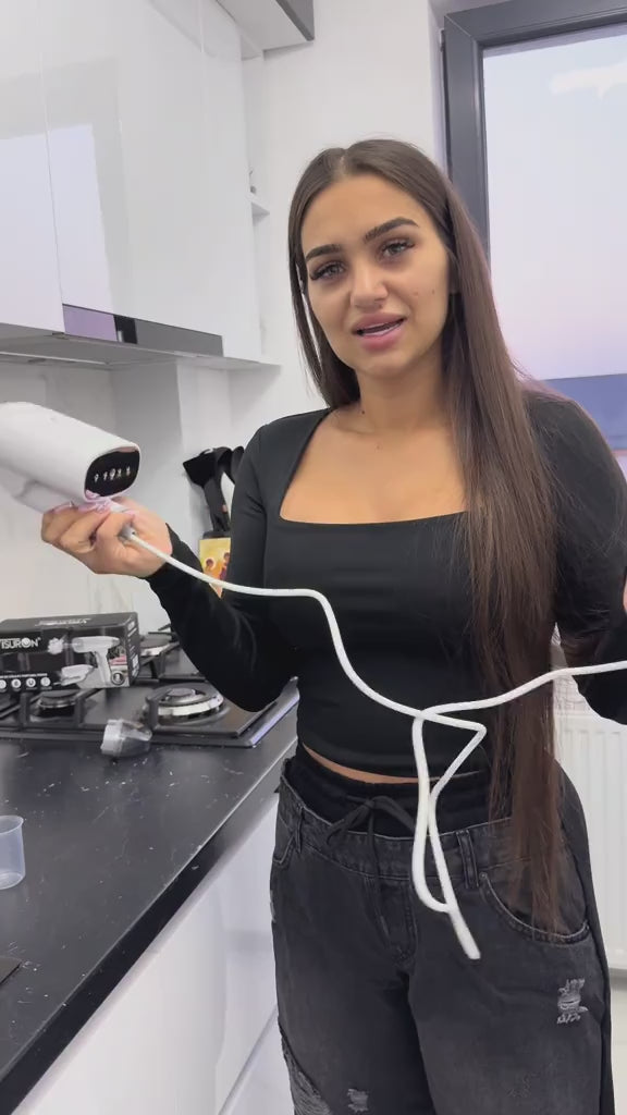 - Rezervor de 100 ml: Deși compact, rezervorul de 100 ml este suficient pentru a netezi o ținută completă sau chiar mai multe piese vestimentare, eliminând nevoia de reumplere constantă. Capacitatea a fost optimizată pentru echilibrul perfect între autonomie și dimensiune.